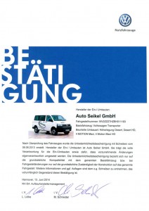 Die Unbedenklichkeitsbescheinigung (UBB) von Volkswagen Nutzfahrzeuge bestätigt, dass seitens Volkswagen Nutzfahrzeuge, bei sachgerechtem Einbau, keine Bedenken gegen diesen Umbau bestehen.