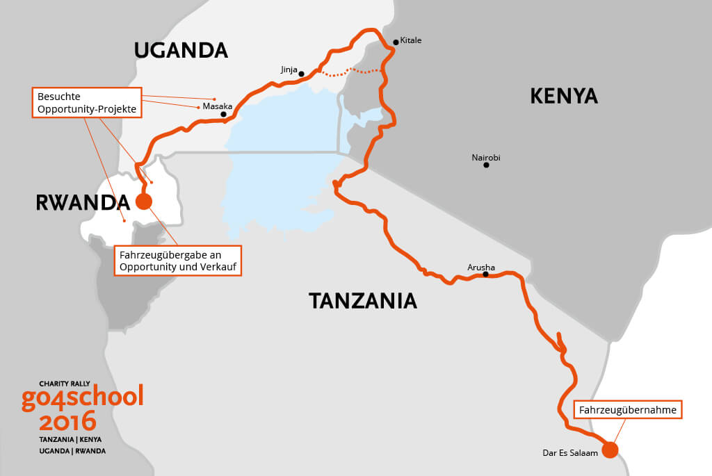 For all the participants of the go4school Education Rally 2016 the motivation was to support this with their own efforts. All the Amaroks provided free of charge by Volkswagen Commercial Vehicles and those financed by the drivers themselves were brought safely from Dar es Salaam in Tanzania through Kenya and Uganda to Kigali in Rwanda.
