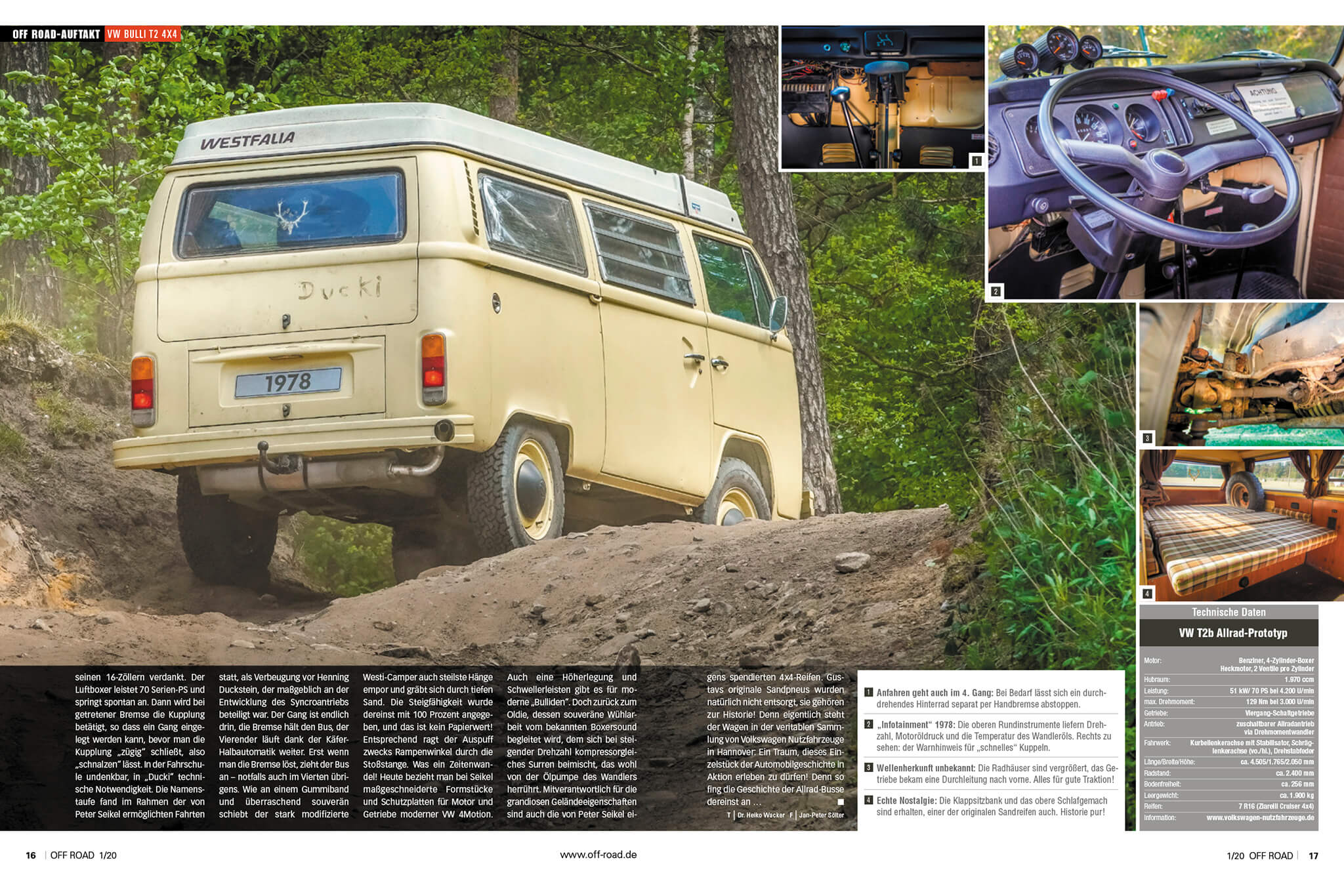 Auf einer Offroad-Teststrecke wurden die Fähigkeiten des T2-Veteranen mit 16-Zoll-Bereifung und in Westfalia-Camper-Ausführung mit einem Volkswagen California Baujahr 2019 verglichen. Und dabei schnitt er gar nicht so schlecht ab! Aber lesen Sie selbst den Artikel zum Thema aus der Zeitschrift „Off Road 1/2020“.