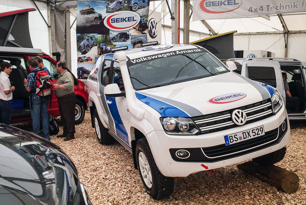 Unsere Fahrzeug-Präsentation wurde durch die enge Kooperation mit Volkswagen Nutzfahrzeuge abgerundet. Denn neben der Vorstellung des gemeinsam entwickelten Volkswagen Amarok Sport, konnten wir Kunden und Interessenten Mitfahrgelegenheiten im Geländeparcours der Messe ermöglichen. Jeweils ein Amarok und ein Transporter Rockton waren an diesem Wochenende im Einsatz. Beide Fahrzeuge waren selbstverständlich mit SEIKEL-Komponenten ausgerüstet.