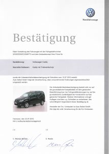 Die Unbedenklichkeitsbescheinigung (UBB) von Volkswagen Nutzfahrzeuge bestätigt, dass seitens Volkswagen Nutzfahrzeuge, bei sachgerechtem Einbau, keine Bedenken gegen diesen Umbau bestehen.