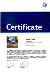 Despite the existence of a positive CNO assessment by Volkswagen Commercial Vehicles, Seikel UK remains solely responsible for the roadworthiness, operational safety and endurance of its fitted parts and conversions as well as for the complete converted vehicle, inasmuch as the vehicle properties are affected by the conversion.