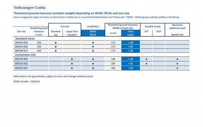 • Lift kit figures Caddy