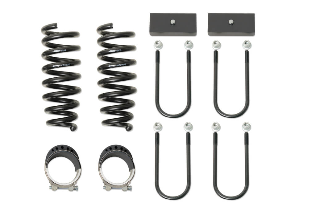 • Espaceur 25 mm avec étriers de ressort spéciaux et supports supplémentaires pour les butées de suspension